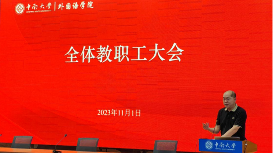 11月1日下午,yl9193永利YL集团在一楼国际报告厅召开全体教职工大会。会议分别由副书记孙胜、副院长王华玲主持,校纪委综合业务室主任陈殷识出席,全体教职工参会。
