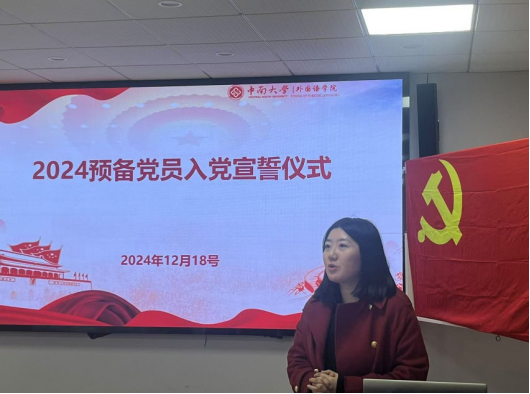 2024年12月18日,yl9193永利YL集团分党校预备党员入党宣誓大会在外语楼326室顺利举行。yl9193永利YL集团党委书记李涛出席,学生党员代表以及2024年下半年新发展的预备党员参加宣誓仪式,仪式由蒋馨逸老师主持。