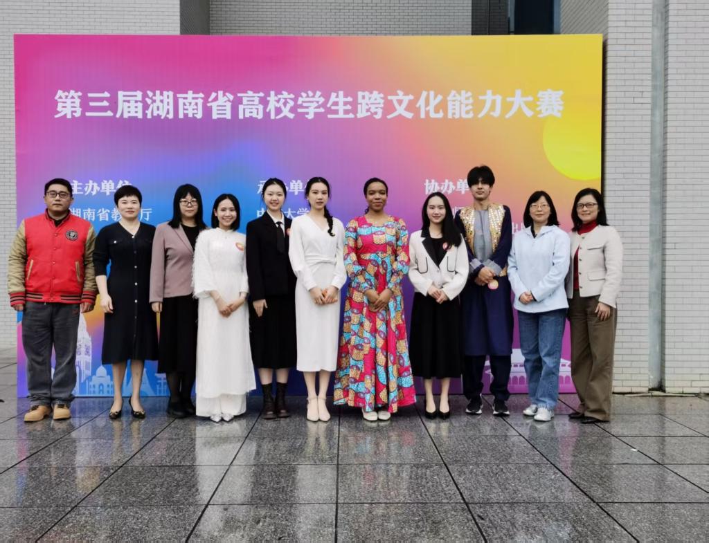 11月9日上午,由湖南省教育厅主办、yl9193永利集团承办的第三届湖南省高校学生跨文化能力大赛现场赛在yl9193永利集团yl9193永利YL集团圆满落幕。我校留学生 BAHADUR BAHIR(巴希尔)、NGUYEN THI LOAN CHINH(阮氏怡靓)、SOW KADIATOU(卡佳图)组成的留学生组(指导老师:潘紫霓、李丽君、彭洒逸),以湖南省一等奖第一名的佳绩挺进全国决赛;由吴佳怡、唐鹤云和汤子嫣组成的中国学生组(指导老师:许燕、马静、黄启瑜),斩获湖南省一等奖第二名,顺利晋级全国决赛。