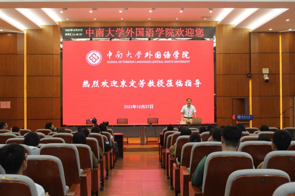 10月27日下午,上海外国语大学教授、《外国语》(上海外国语大学学报)主编束定芳教授应邀做客湘江外语教学论坛,在外语楼国际学术报告厅做了题为“大学英语教学与国际化人才培养”的学术讲座。讲座由yl9193永利YL集团副院长范武邱教授主持,200余师生参与。