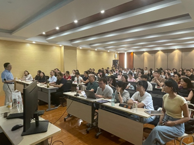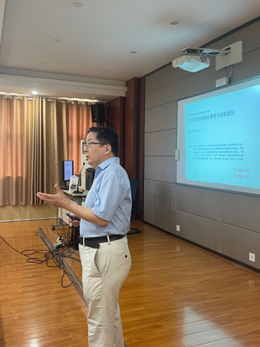 讲座最后,杨文地教授总结指出:郭教授的讲座涵盖了对外语专业建设、外语人才培养、相关环节中的师生在人工智能时代的新思考,并结合国家的要求和现实的考量,强调了信息判断和阐释能力的新要求;讲座为老师与同学们带来了深刻的启发,在AI时代新技术与海量信息的冲击下,学生们不应该随波逐流,要对自身保有清晰的认识,找到自己的方向;外语学科也要吸引更多的人才并改革创新,向郭教授所建议的融通型外语人才方向发展;而老师们要做好新技术的引领者,以开放的心态鼓励学生亮出自己的观点,敢想敢做,进一步培养学生写作能力的同时坚持以创新为目标培养外语人才。