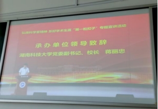 此次活动由省科学技术厅、省教育厅、省科学技术协会主办,省科学技术事务中心、湖南科技大学承办,采取“线下+线上”相结合的方式,主会场设在湖南科技大学,我院全体研究生新生收看了本次宣讲活动的转播。