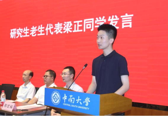 2022级外国语言学及应用语言学梁正同学作为在校研究生代表发言。他强调了成长型思维的重要性,告诉大家要坚信能够通过努力改变未来。除此之外,他还提出了四个原则——目标明确、精力专注、反馈及时和极限压力,鼓励大家敢于挑战,在过程中成长和进步。