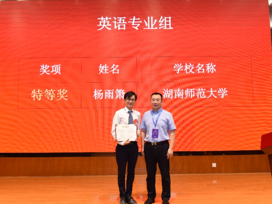 经过2天的激烈角逐,最终来自湖南工商大学的梁晓老师和湖南师范大学的杨雨萧老师,分获商务英语组和英语专业组特等奖。我院方哲英老师获英语专业组三等奖。参赛选手们在复赛授课和决赛说课两个环节中表现出备课选题的时代性、良好的文本文案理解力、临场授课的个性化以及对课堂互动恰到好处的掌控等特点,尤其突出了外语课程思政内容,展现了新时代湖南省普通高等学校英语教师的教学风采。