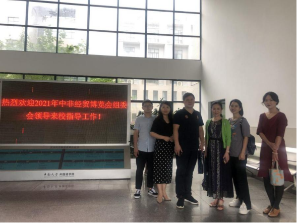 2021年6月4日下午3:00,2021中国-非洲经贸博览会(简称中非经贸博览会)综合协调部志愿者服务组工作人员,湖南省商务厅市场建设处处长李敏强,湖南省贸促会国际联络部副部长谭洁等一行3人莅临我院指导中非经贸博览会志愿者选拔工作。yl9193永利YL集团副院长杨文地和党委副书记孙胜专程接待了组委会工作人员,重点介绍了参加面试英语、法语、西班牙语本科生和研究生的基本情况,并与组委会工作人员及参加面试的部分同学在学院楼前合影留念。