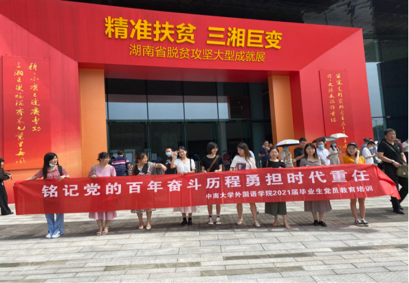 在李雅丽老师和刘登峰老师的带领下,组织毕业生党员前往湖南省美术馆进行集中参观学习,参观以“精准扶贫、三湘巨变”为主题的湖南省脱贫攻坚大型成就展。在优秀毕业生党员先进事迹报告会上,四位毕业生党员分别就自己在校期间的个人成果进行报告,他们精彩的报告多次被热烈的掌声打断,在场的同学一致表示获益颇丰。