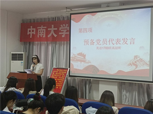在国歌庄严的旋律中,活动拉开帷幕。李雅丽老师宣读了本期预备党员名单,之后由本科生英语一党支部李梦桥同志带领预备党员进行庄严宣誓。