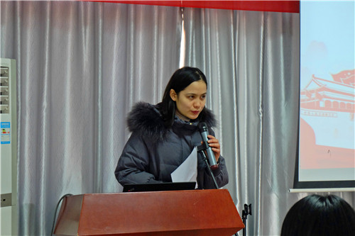本科生小语种党支部党员何景燕作为老党员代表发言。她提出,党和国家目前正处于新时代浪潮的潮头,亟需高素质人才为祖国建设添砖加瓦。她希望在座的预备党员们能够践行“知行合一,经世致用”的校训,加强理论学习,用科学的思想武装自己;乐于奉献,扎根校园燃烧青春。真正做到严格要求自己,展现党员风貌,争做模范,争当先锋。