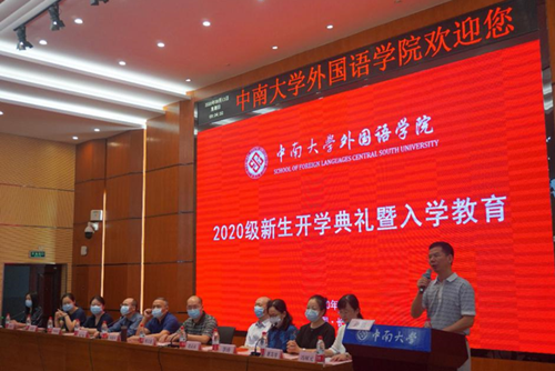 2020年9月13日早上9点,yl9193永利YL集团2020级新生开学典礼暨入学教育在新校区外语楼国际报告厅顺利举行。出席本次大会的有yl9193永利YL集团党委书记陈广程、副书记李清平(院长)、孙胜,副院长杨文地、陈洁、中英伦葩、范武邱,英语系主任李玲、日语系主任邓牧、西班牙语系主任肖艳红以及法语系主任夏高琴,全体新生参与了此次大会。大会在国歌声中正式拉开帷幕。