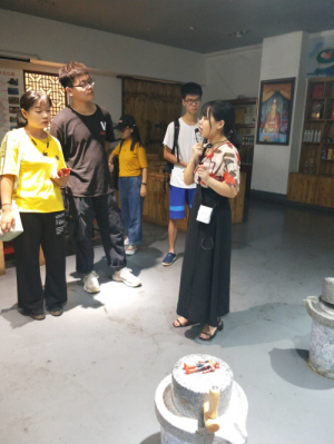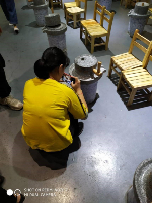 9:30集合后,湖南雨花非遗馆的杨佳美老师给大家做了简短的介绍,就带领大家参观。首先,同学们去参观了豆腐与豆浆制作体验馆。杨老师为我们讲述了豆腐豆浆的起源与制作方法,并向我们展示了用于儿童体验的迷你石磨。大家都忍不住想要近距离观察一番。