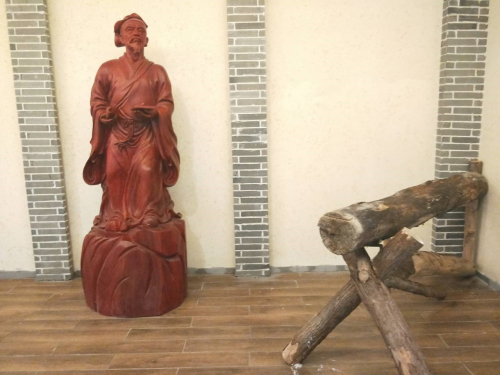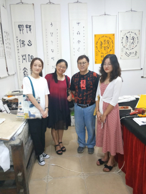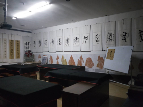从木工厂出来,不远处就是陶艺体验馆与甲骨文体验馆。甲骨文是雨花非遗馆最新研发的课程。体验馆的墙上挂着十二生肖的甲骨文(左一照片)。字型奇巧,结构严密让人感慨古代人民的劳动智慧。最后两位同学代表与张征老师(照片左二)及甲骨文授课老师谢兆岚老师(照片左三)合影留念。