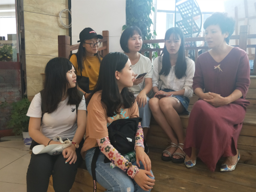 中午11点30分,我们来到大厅集合,已经等候我们多时的邓运娇馆长不仅对我们的到来表示了热烈的欢迎,还与我们坐在一起,亲切聊天,点拨我们遇到的难题。从谈话中,我们可以感受到邓运娇馆长对保护传承非遗文化的一腔热忱,更能体会到她对学子们所寄予的厚望。正是郭存勇和邓运娇夫妻馆长不计得失的付出,才有了今天湖南雨花非遗馆的辉煌。最后,我们在“天下非遗聚雨花”的牌匾下合影留念,结束了这段意义非凡的“非遗”体验。承载着郭馆长、邓馆长等无数怀揣“匠人梦”的“非遗”传承人的热切期盼,相信中南学子以及新一代的中国青年,必将把保护中国传统文化的火炬传递下去!