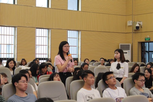 随后,秦始皇帝陵博物院刘婷婷老师对秦始皇生平、秦始皇陵概况及部分兵马俑坑进行了详细介绍;韩东红老师用流利的英语介绍了秦始皇陵的概况,并与同学们互动,现场教学部分专业英文词汇,提醒大家注意重点词汇的正确发音,展现了一名双语讲解员的高标准、高素质;最后,潘莹老师为大家详细介绍了实习前期准备工作以及实习安排、要求和流程。大会的最后,同学们观看了2018年的实习回顾视频,学长学姐们的优秀表现激发了在场同学们对此次实习的热情和期待。