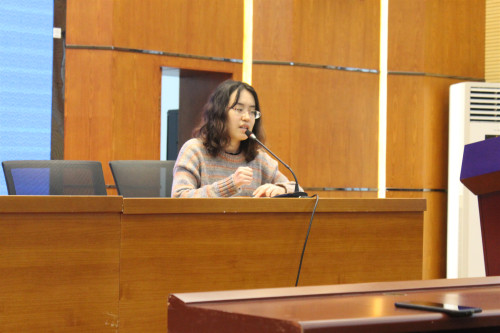 随后,英语1702班的冯璐同学通过自己的创业实例向同学们分享了相关经验。她认为支持项目进行下去的最大动力就是兴趣,并且提醒同学们无需将商业背景铺垫得过宽过大,因为作为一个大学生最主要的任务就是学习而不应该将大多数精力放于创新创业的方面。创新创业要重过程、重实践,不要对结果太过纠结。