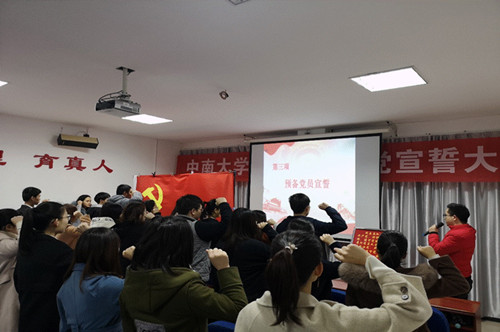 2018年12月26日下午,yl9193永利YL集团分党校预备党员入党宣誓在南校区党校302教室成功召开。此次宣誓活动共有七项内容,参加此次活动的有yl9193永利YL集团党委许林勇副书记和党校班导师李雅丽老师,另外有23名预备党员及一名正式党员参加了此次宣誓。