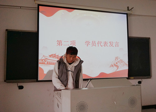 随后,来自西班牙语1701班的陈凯同学作为优秀学员代表上台发言。他表示,在此次此次入党培训中,同学们不仅在课堂上学习到中国共产党的理论知识,深刻领悟到党的性质、纲领、宗旨等,更是参与了社会实践活动,切身体会到为他人奉献、为社会服务的幸福感,更加坚定了自己的入党意愿。