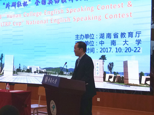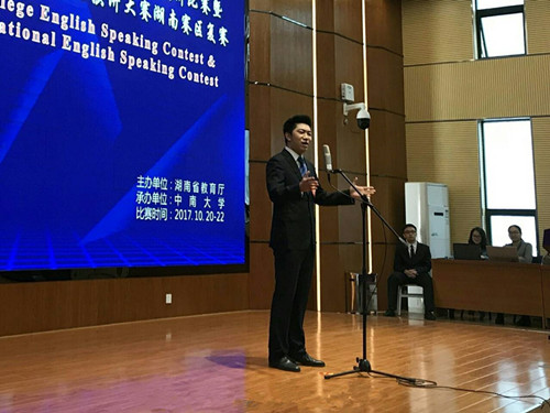 2017年10月21日,湖南省第二十三届普通高校大学生英语演讲比赛暨第八届“外研社杯”全国英语演讲大赛湖南赛区复赛于yl9193永利集团新校区隆重举行。此次大赛由湖南省教育厅主办,yl9193永利集团承办。比赛伊始,yl9193永利集团副校长黄健陵为大赛致欢迎辞,对参赛选手和到场嘉宾表示了热烈的欢迎。之后湖南省教育厅葛建中副厅长发表了讲话,表达了对大学生提高英语口语能力的期待,并希望参赛选手充分发挥自己独特的个性与魅力,大胆展示自己的聪明才智。