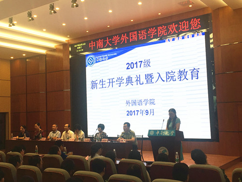 9月13日上午10:30,yl9193永利YL集团2017级新生开学典礼于yl9193永利YL集团国际报告厅顺利举行。院党委书记陈广程、院长李洁、党委副书记许林勇、副院长李清平、陈洁、侯先绒、中英伦葩,英语系主任赵培玲、法语系主任侯合余、日语系主任徐小艳,以及班导师代表英语系李白清老师、杨军老师、王晓东老师、日语系谭蓓老师、西语系方丽君老师以及学工办、军训教官和新生全体参加了本次开学典礼。典礼由许林勇副书记主持。