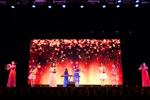 国际生乐队表演《那年的愿望》带我们回顾了大学四年一路走来的点点滴滴,传递着中外同学间浓浓的友谊;西语1301班的合唱诗朗诵寄托了西语班同学对毕业生们拥有一个灿烂未来的美好祝愿;国际教育学院同学准备的东南亚舞蹈尽显异域风情,赢得喝彩阵阵;法语1301班的情景剧《宠爱》青春洋溢,活力四射。