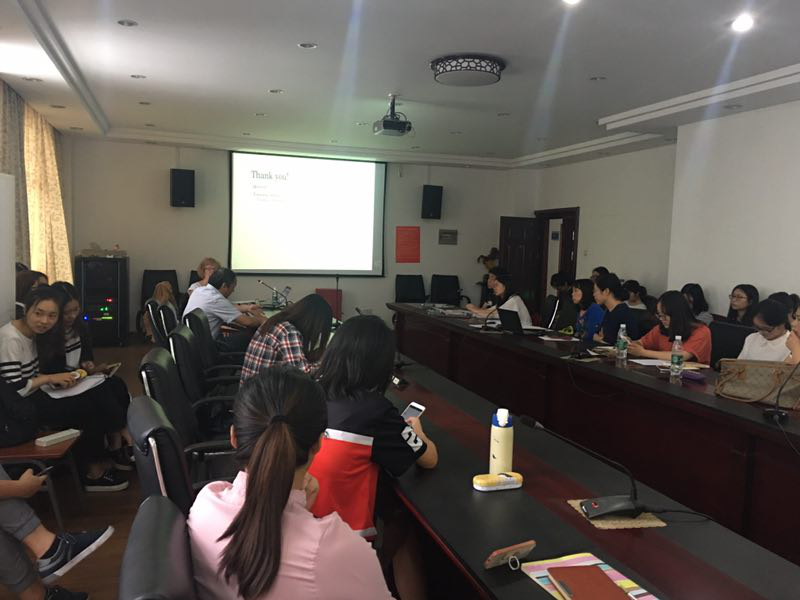 6月2日的讲座主题为Teaching and Explaining Academic Vocabulary. Dr. Horst 侧重于讲解显性词汇教学,并强调要基于情景来教授以及解释词汇,通过句子的结构、词汇的词根等方法来猜测词意。Dr. Horst 将图片、文字以及游戏相结合使得讲座充满趣味性同时也拉近了彼此之间的距离。