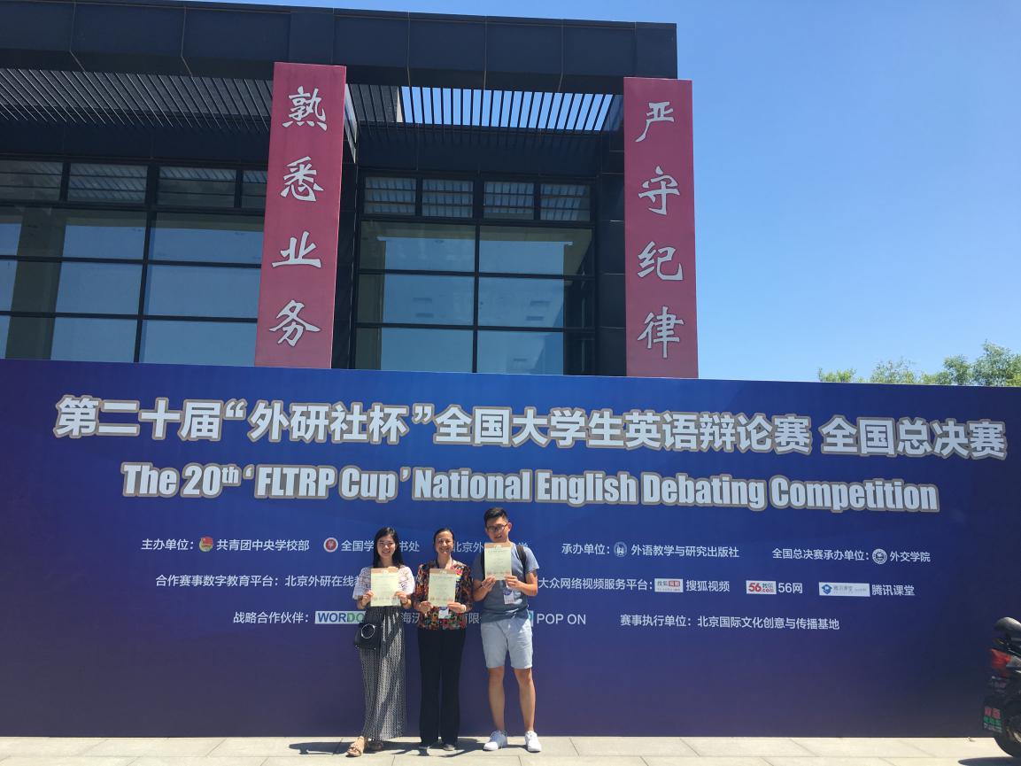 5月18日-25日,2017年“外研社杯”全国大学生英语辩论赛全国总决赛在外交学院圆满落幕。我院14级本科生乔轩东和谭珊珊在指导老师耿俐琴的带领下,凭借扎实的专业功底、丰富的知识储备和敏捷的思维能力,经过8轮激烈的角逐,最终荣获全国二等奖的优异成绩。