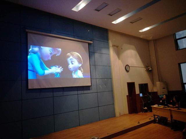 最近几年风靡全球的动画片深受选手们的青睐。有一组选手带来了《冰雪奇缘》的展示,两位同学一人分饰好几个角色,切换自如。语音优美,歌声悦耳,给观众带来良好的视听效果。《夏洛的网》中,选手将影片中小猪、蜘蛛、马、绵羊等各种动物的声音模仿得惟妙惟肖,令人惊叹不已!