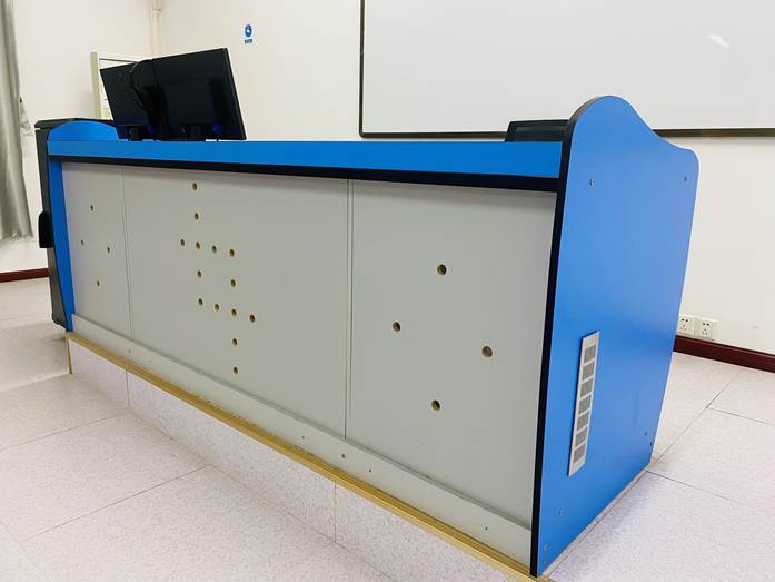 1、 尺寸:主控台长2400mm,宽800mm,高800mm, 2、 桌子材料采用16mm进口双贴面三聚氰胺板,板材基材为E1级原木刨花板,颜色为蓝白相间,选用优质PVC封边条,利用进口全自动封边机,对板材截面进行封边,粘力强,密封性好,外形美观,经久耐用。背面与侧面开有通风孔,保证设备的散热良好。选用ABS连接件,牢固耐用。 3、 提供1个国标品牌二三插座及底座明盒,并按用户要求固定安装在教师主控台合适位置。 4、 提供2.5平方国标单股铜芯电源线,从教室电源开关箱接至主控台二三插座,供主控台设备取电。 5、 提供国标八位五孔排插一个。 6、 提供国标六类网线由教室交换机柜接至教师主控台合适位置,供教师电脑网络连接。铺设至教师主控台处强弱电线材应分开走线,用绝缘PVC线槽铺设及固定。 7、 报价包含教室主控台内以上所述线材(网线、电源线)、配件(排插及二三插座)安装,线材用扎带固定,桌子外不露线,美观大方。 |