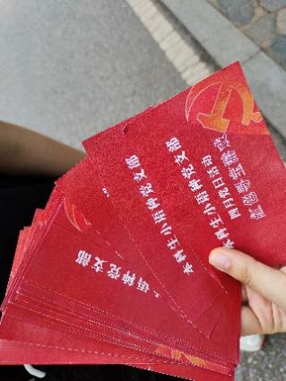 全体党员在东方红广场集结完毕后,沿登山步道向山顶进发。途中党员们开展“红色寻宝”小游戏,在古树石阶间寻找印有“中央八项规定”的相关知识卡片。“中央八项规定是( )时候由中共中央政治局会议审议通过?”“中央八项规定的八个方面分别是?”……党员同志们积极寻找卡片,认真思考问题,开展讨论,对中央八项规定精神及其实施细则有了进一步认识。