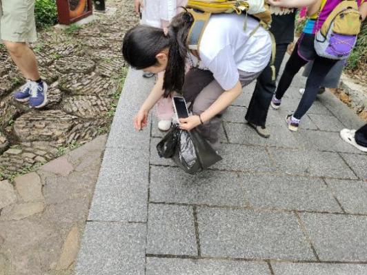 登山途中,党员们手持环保袋,沿途捡拾饮料瓶、纸屑等垃圾,以实际行动学习践行“绿水青山就是金山银山”的理念。下山后,党员们将收集的垃圾投放至垃圾分类回收点,为建设美丽中国贡献一份力量。