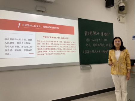 自4月份学校及学院深入开展学习贯彻习近平新时代中国特色社会主义思想主题教育以来,大外五、六教研室党支部就琢磨着怎么将学习落到实处、学到深处。多年的一线教学实践让党员同志明白,备课、讲授是最有效的学习途径之一,去年下半年支部成功举办了“一课一片一实践”系列微党课活动,也为大家提供了良好的实践经验。因此,支委会决定组织支部全体党员进行“主题教育”系列微党课授课,在五月和六月分两轮进行。