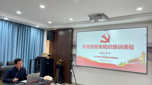 孙胜副书记分别从党的基本知识、党务工作要点介绍、党支部相关知识概述和党支部日常工作实务四个方面对党支部支委进行了系统培训。
