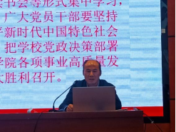 学院党委书记陈广程围绕《习近平谈治国理政》第四卷出版发行的重大意义、逻辑结构、时代背景、理论创新及实践逻辑等方面进行了讲解,结合《习近平谈治国理政》第四卷导读视频对党员进行学习辅导。