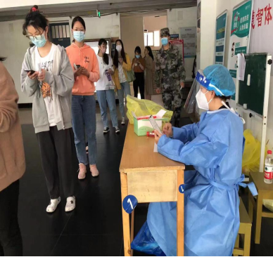 第12轮全员核酸检测于2022年5月11日启动,在小组长段慧如老师的指导下,外语院谢芸老师、方颖琳老师、刘胜兵老师顺利完成了任务。刘胜兵老师和谢芸老师都是下完课第一时间就赶到培训地点,谢芸老师更是快马加鞭地从湘雅校区赶了过来。因为没有采集核酸检测人员信息的经验,她们随便扒了两口盒饭就立即投入到了培训工作中。随后,方颖琳老师提早40分钟去到了检测点,与湘雅医院的检测护士一起做准备工作。方颖琳老师所在的检测点是本部食堂前坪的3号检测点。这里人员流动量大,排队检测的队伍常常延伸到百米以外。为了不让同学们等太久,她们提前开始了检测,这一干就是3个多小时,直至下午四点十分左右,共完成了约1500人的检测。虽然只是录入信息、协助护士处理突发情况,但在这个平凡的岗位上,大家体会到了无数抗疫志愿者的艰辛和不易,感受到了中南人“团结抗疫、共克时艰”的凝聚力和战斗力。大家一致表示,今后还会积极投身志愿者工作,锤炼担当、践行使命!