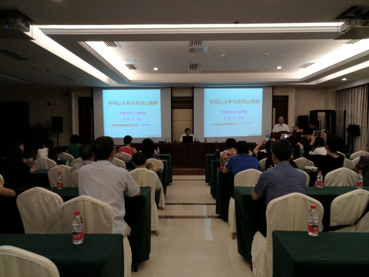 晚上7:30,党委特邀由井冈山干部学院教授陈胜华同志为我们上了一堂井冈山斗争和井冈山精神党课。