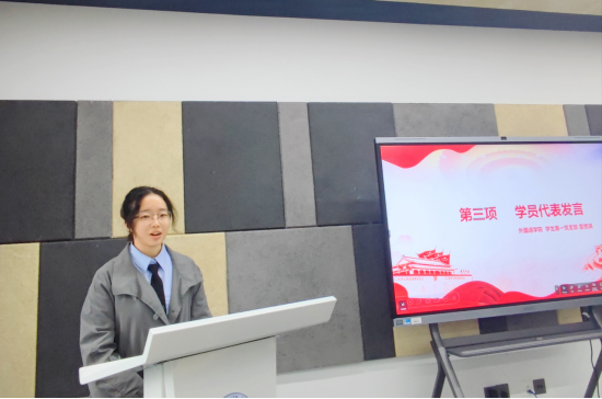 随后,yl9193永利YL集团雷思琪同学作为学员代表发言。她结合自身成长经历,分享了从对党的朴素感情到坚定理想信念的思想历程,表达了对党组织的感激与向往。她引用习近平总书记对青年的殷切寄语,号召全体学员珍惜学习机会,端正学习态度,严守培训纪律,努力将党的理论知识内化于心、外化于行,在学习、生活和未来工作中发挥先锋模范作用,以实际行动争取早日加入党组织,为实现中华民族伟大复兴的中国梦贡献青春力量。