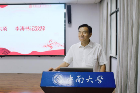 大会第六项,李涛致辞。他代表学院党委向新加入党组织的同志们表示了诚挚的祝贺,并结合百年党史、学院学科发展历史、学院共产党员奉献历史对大家提出了几点希望和要求:一是要坚定马克思主义信仰,坚定共产主义理想,在成长的道路上坚持学习党的创新理论,坚持用科学理论武装头脑,不断提高政治觉悟和思想境界。二是涵养家国情怀,全体同志要以强国建设和实现民族复兴为己任,始终不忘初心、坚守使命,勇敢担当、勇于作为,以青春力量为实现中华民族伟大复兴中国梦贡献力量。三是强化身份意识,每个同志要明确作为一名学生党员的责任与使命,在实际工作生活中,做一个纯粹的人、一个高尚的人、一个脱离低级趣味的的“大写的人”,充分发挥党员先锋模范带头作用,为社会为国家贡献自己青春的力量。四是要积极传播正能量,全体同志要积极传承和弘扬中华优秀传统文化、革命文化和社会主义先进文化,积极发挥外语人优势,在传播中国文化、塑造中国形象、推动构建人类命运共同体的伟大征程中贡献青春力量。
