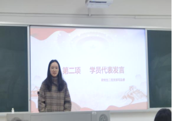 紧接着,来自研究生第二党支部的毛泓睿同志作为本期优秀学员代表发言,她表示,通过本次培训班的学习加深了对党的相关理论的理解,提高自我政治理论修养,将努力在今后的学习生活中学思想、强党性、重实践、建新功,为实现第二个百年奋斗目标不懈奋斗。
