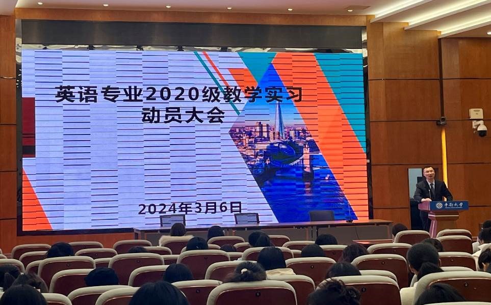 教学实习动员大会于3月6日下午在学院一楼报告厅隆重举行。副院长鄢宏福强调了教学实习的重要性,鼓励学生们珍惜实习机会,认真融入教学实践,努力提升自我。英语系制定和完善了实习规章制度、实习档案的写作指南,系主任阎勇和副主任田莎对实习期间的任务、纪律及安全事项等进行了详细说明,为学生们的实习活动提供了明确指引与要求。