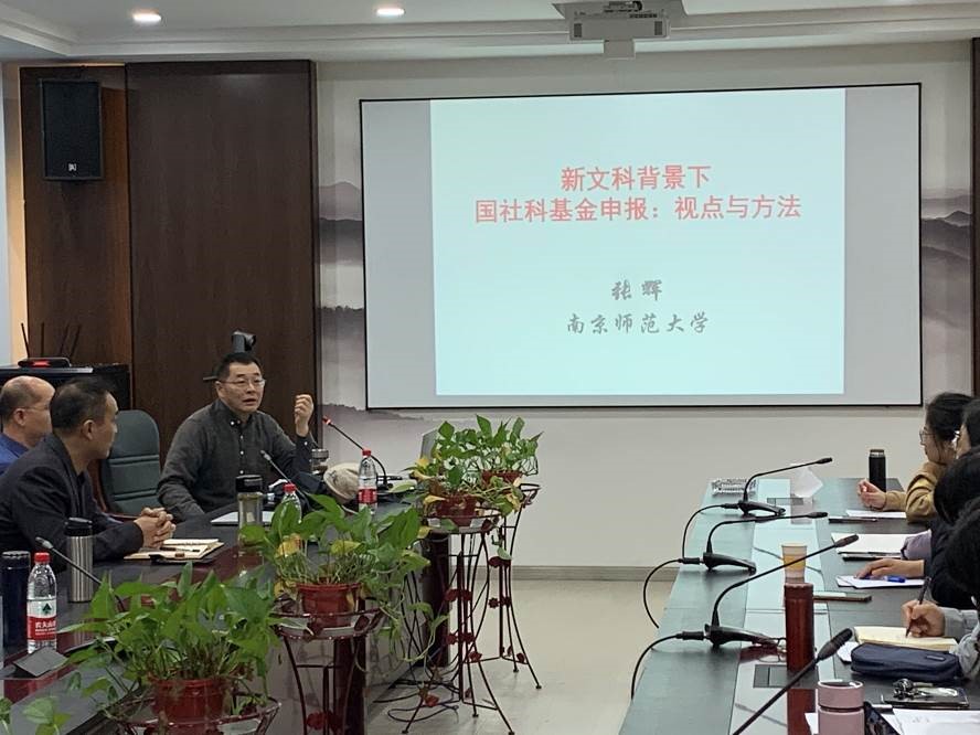 4月3日下午,南京师范大学特聘教授、博士生导师张辉做客“湘江外国语言文学论坛”,以“新文科背景下国家社科基金申报:视点与方法”为讲题,分享了其在国家社科基金申报与评审方面的丰富经验和独到见解。讲座由院长杨文地教授主持,副院长范武邱、仲文明、鄢宏福等出席,数十名师生参与并展开讨论交流。