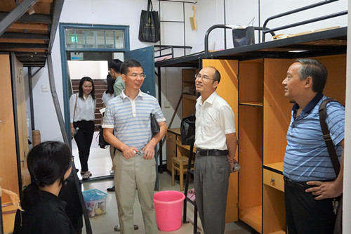 领导们走进一间间新生宿舍,对新同学的到来表示热烈欢迎,悉心询问了新生衣、食、住、行各方面的问题,认真聆听学生及家长对学校设施环境、学院迎新工作的感受,详细了解每位学生的基本情况和入学心情,耐心介绍大学的学习方法与生活特点等。
