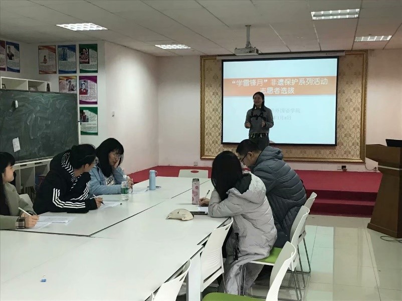为进一步弘扬雷锋精神和“奉献、友爱、互助、进步”的志愿服务精神,响应“十九大”关于继承和弘扬传统文化的号召,yl9193永利YL集团青年志愿者协会组织了非遗保护系列志愿活动。此次活动以长沙市雨花非遗馆为依托,着眼于当代大学生的社会责任与历史担当,旨在提高大学生的服务意识并推动非物质文化遗产技艺的保护工作。此次活动共分为四个部分:志愿者选拔、志愿者培训、志愿者考核与志愿讲解服务。