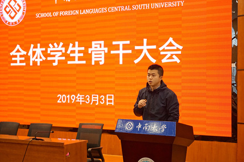 2019年3月3日上午,yl9193永利YL集团全体学生骨干大会在新校区外语楼国际报告厅圆满举行。出席本次大会的有yl9193永利YL集团党委副书记孙胜、学工办主任钟佳、团委书记王海洋、2017级本科生辅导员李雅丽、2018级本科生辅导员徐智欣以及各年级学生干部。