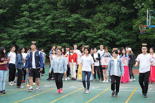 在动感十足的悦耳音乐中,“跳竹竿”拉开了活动的序幕,选手们手挽手跳跃,感受浓厚的黎族风情;“顶罐走”源自少数民族舞蹈,展现了参赛选手们的良好的平衡能力和心理素质;“篾鸡蛋”、“指压板跳绳”、“踩气球”、“毽球”、“板鞋竞走”更考验了同学们的团队协作能力和默契程度。“摸石过河”、“袋鼠跳”更是增加了活动的趣味性。在所有比赛项目结束后,进行了创意T台服装秀,同学们两两组队积极参与,参与的同学穿上少数民族的精美服装,同时进行现场展示,此环节将整个运动会推向了高潮。