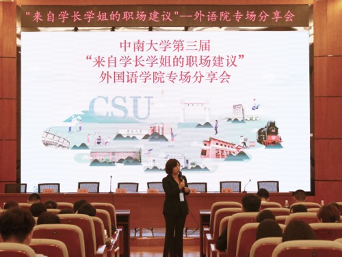 本次经验分享会在热烈的掌声中圆满结束。三位优秀校友前辈结合自身经历在职业选择、求职准备、职场适应以及职业发展等方面为同学们进行了分享,同学们也同优秀前辈们进行了互动,在答疑环节,同学们积极发问,前辈们耐心回答,整个会场气氛融洽。校友的求学经历和求职之路无不建立在中南人努力拼搏的精神之上,他们的经验是在校学生走好人生之路最生动、最有效、最令人信服的教科书。愿外语院学子能够学习前辈们自强不息的精神,在奋斗中不断学习成长,于今后的人生道路中创出新的辉煌!