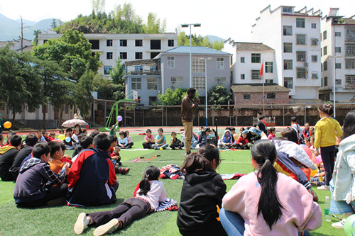 活动当中,志愿者们与小学生们深入交流,培养友谊,海外留学生们更是把各自的看家本领带到了学校:非洲手鼓,空竹表演及流行歌曲演唱在绿茵场上此起彼伏。伴随着清脆的鼓声,飞舞的空竹以及悠扬的歌声,小学生们在寓教于乐的活动中体验到了异域文化的特色、动手协作的乐趣以及努力学习的必要性。