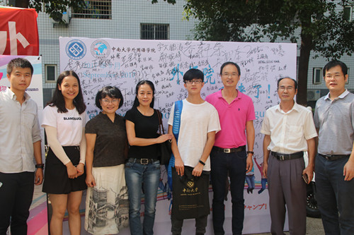 9月8日,迎新第二天,yl9193永利YL集团陈广程书记,李洁院长,许林勇副书记及各级辅导员们来到了现场指导迎新工作,期间不仅嘱咐了前来报到的新生一些入学注意事项,解答了家长的有关疑惑,还与同学及其家长在签名版前合影留念,进一步加强了与大家的感情交流。