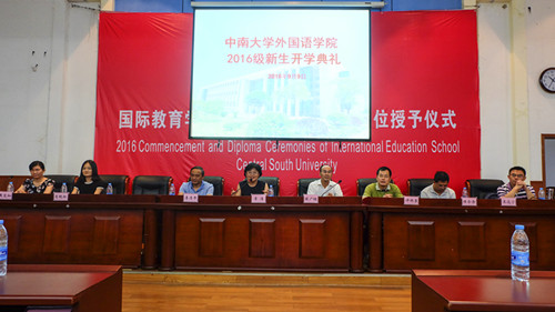 9月9日下午四点,yl9193永利YL集团2016级本科生开学典礼于yl9193永利YL集团国际报告厅顺利举行。yl9193永利YL集团党委书记陈广程、院长李洁、党委副书记许林勇、副院长李清平、法语系主任侯合余、西语系主任肖艳红、英语系副主任周觉知、教师代表吴远宁、班导师代表方哲英以及学工办、军训教官、本科生新生全体参加了本次开学典礼。典礼由16级辅导员艾博塔主持。