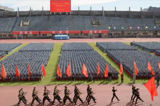 10月10日,晨光熹微,在教官的带领下,跟随“六营”“二十六连”的两面红旗的指引,二十六连的同学整装出发,穿过天桥,走进鸟巢,参加yl9193永利集团2022级本科新生军训动员大会。