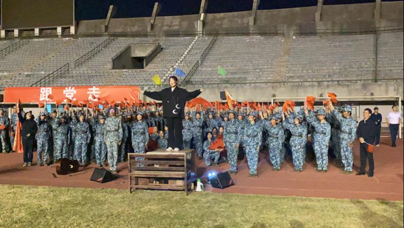 “不忘初心,继续前行,万水千山最美中国道路……”在四名领唱同学的带领下,孙书记及蒋导与全体同学共同唱响属于二十六连的《不忘初心》,在袅袅不绝的歌声中,我们看到了祖国在这一百年走过的漫长里程,听到了前辈们旅途中响亮激昂的口号,忆起了悠悠岁月中无数感人的瞬间。