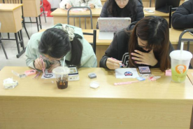 活动现场暖意融融,为同学们打造了暂别压力的治愈角落。拼豆虽小,却藏着无限巧思。活动伊始,同学们在工作人员的细致指导下,迅速熟悉拼豆的制作流程:挑选色彩、对照图纸拼凑、耐心熨烫。参与者们沉浸在创作之中,一件件活泼灵动的拼豆作品在他们手下诞生。